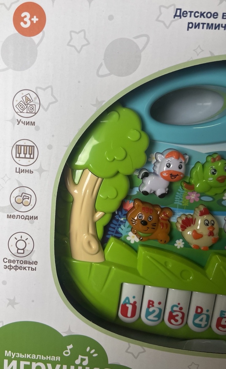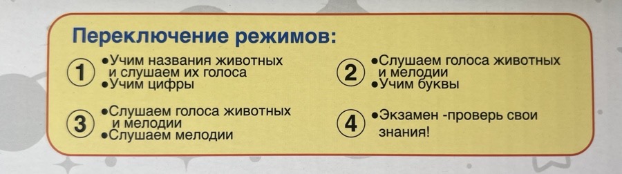 - воспроизводит песенки, мелодии, голоса животных, звуки пианино;