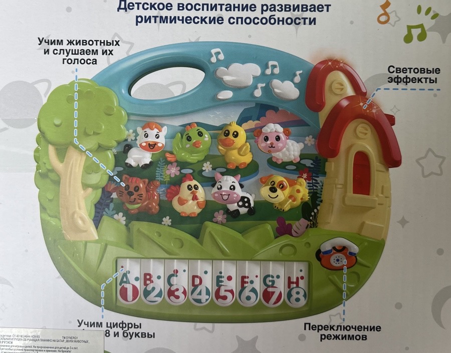12-15 июня работаем с 9:00 до 17:00МУЗЫКАЛЬНАЯ ИГРУШКА ОБУЧАЮЩАЯ ПИАНИНО НА БАТАР.,ЗВУКИ ЖИВОТНЫХ ,КОР. 28,8*6*24СМ