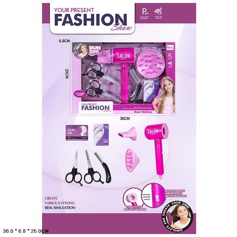 12-15 июня работаем с 9:00 до 17:00НАБОР САЛОН ПАРИКМАХЕРСКАЯ С ФЕНОМ НА БАТ. С РАЗНЫМИ НАСАДКАМИ И АКСЕСС.,КОР.36*6,8*25СМ