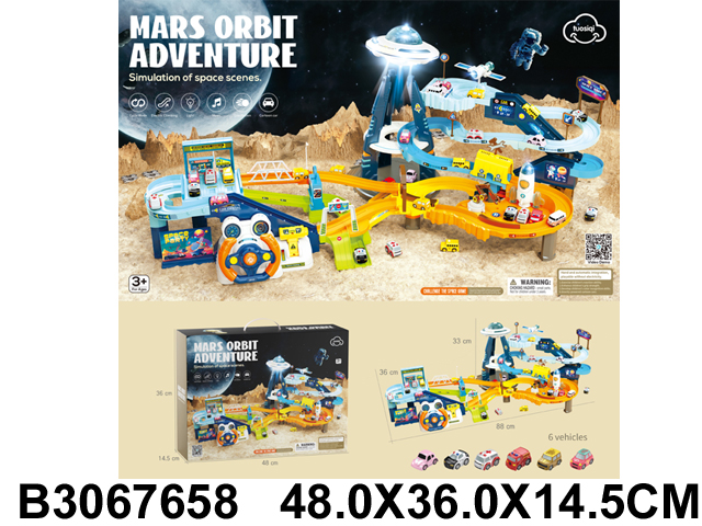 До конца года работаем ежедневно с 9:00 до 19:00ТРАК С ПАРКОВКОЙ МАШИНОК 6 ШТ. ПРИ КОСМОДРОМЕ С РАКЕТОЙ И СТАНЦИЕЙ,КОР. 48*36*14,5СМ