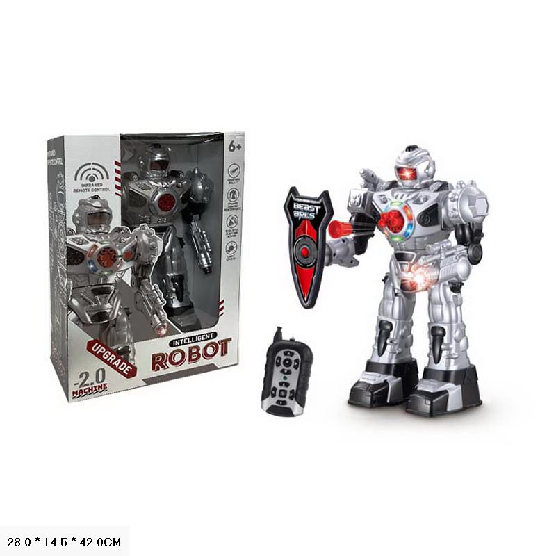 - Робот может: ходить вперёд и назад, поворачивать влево и вправо, танцевать под музыку, а также стрелять присосками. Управлять им можно при помощи специального пульта, который входит в набор.