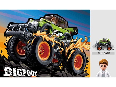 12-15 июня работаем с 9:00 до 17:00Конструктор пластиковый Sluban Монстр-трак зелёный(38х28,5х6,7см,264дет.,1фигурка,в кор.)(M38-B1158)