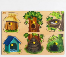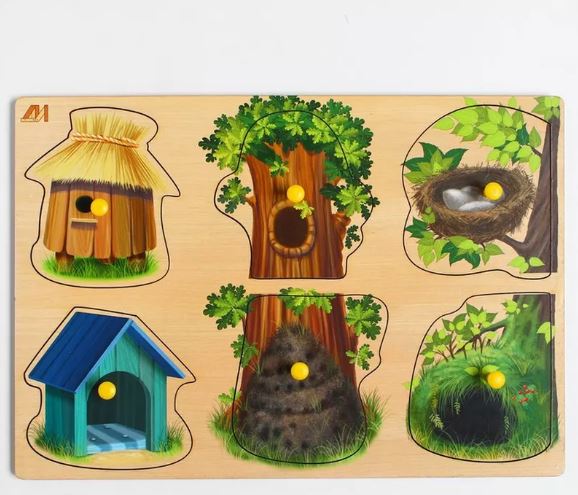 До конца года работаем ежедневно с 9:00 до 19:00Деревянная Рамка вкладыш многоуровневая Домашние животные, кто где живет? ОА-00000474 /Арбо/