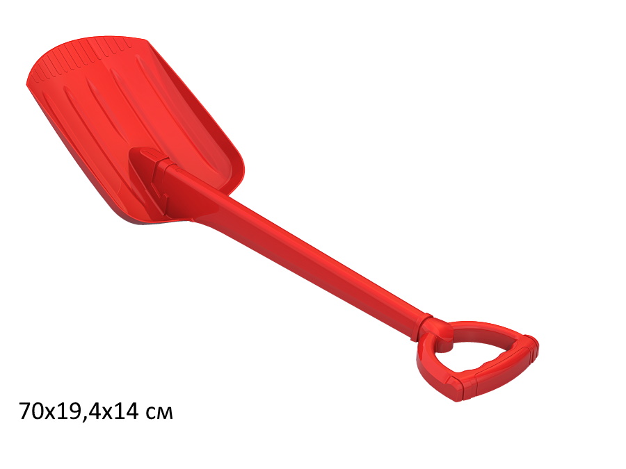 - Детская пластмассовая лопата длиной 70 см красного цвета с артикулом 130/1 от бренда «Нордпласт».
