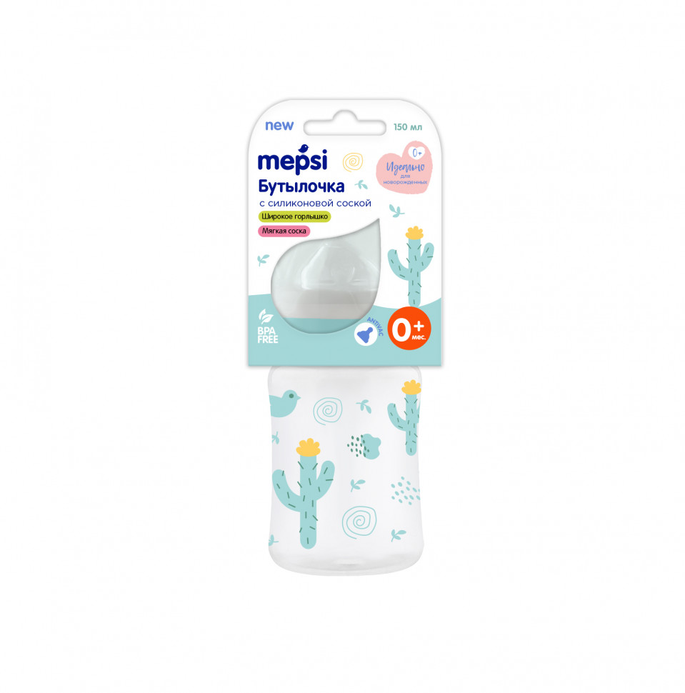 12-15 июня работаем с 9:00 до 17:00Бутылочка для кормления с широким горл. без ручек, 150 мл, 0+ мес., Кактус